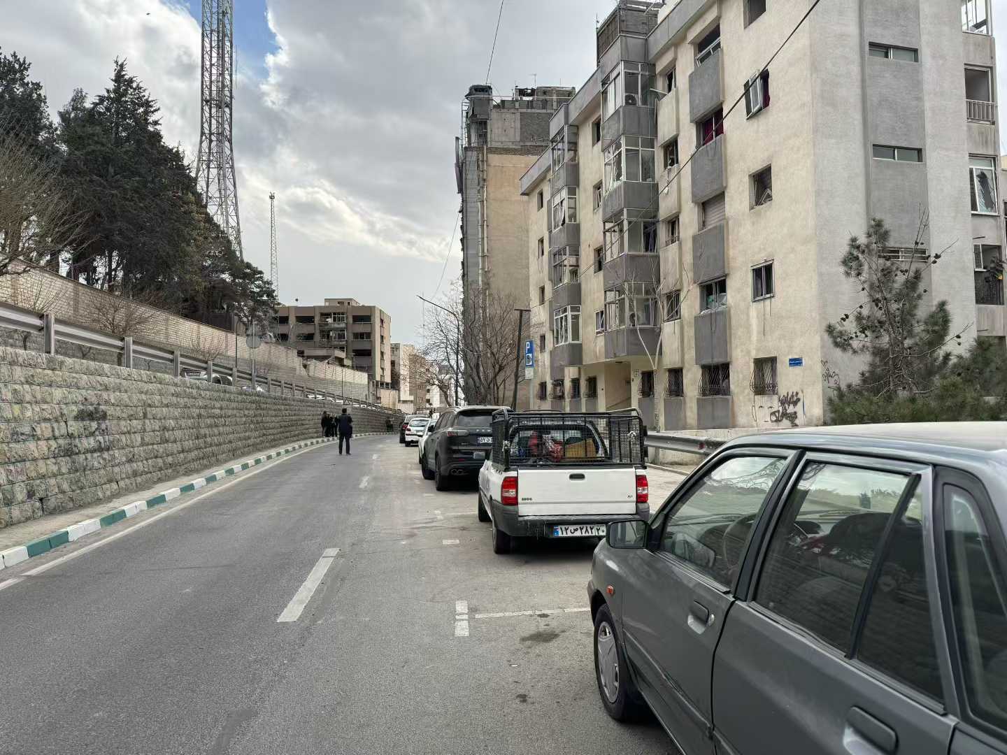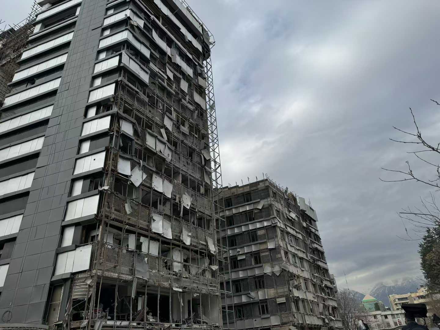我们走到隔离线附近,看见一对夫妇带着一个四五岁的孩子站在那儿。他们指着自己住的楼对我说,窗户全掉了,门也没了。妈妈说他们当时正在吃晚饭,先是两声小的爆炸声,然后是一声巨响——玻璃像雨一样碎下来。她一把抱住孩子,脑子里只剩一个念头:“要死就一起死。”轰炸结束,她和丈夫带着孩子赶紧往外跑,鞋都没穿,光脚站在街上,到处都是灰和烟。后来有邻居把他们接去过夜,孩子吓得一夜睡不安稳,一会就醒来哭一次。今天他们回来想看看家里还能不能收拾一下,找政府来评估损失,可她说着说着就哭了。她记得上次“十二天战争”,很多人家玻璃碎了,政府说要测量和补偿,可后来就没消息了。